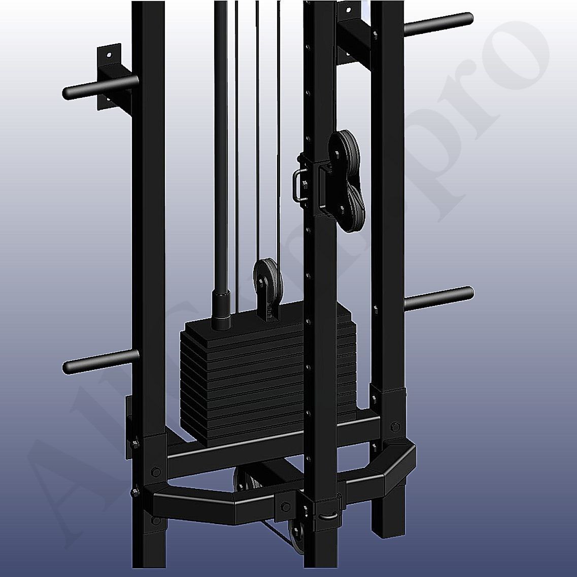 AllGym — это интеллектуальная тренировочная станция, которая за 30 секунд трансформируется из "силовой рамы" для безопасных приседаний в тяговый блок для спины, а затем в профессиональную скамью для жима рычажного типа (Hammer).